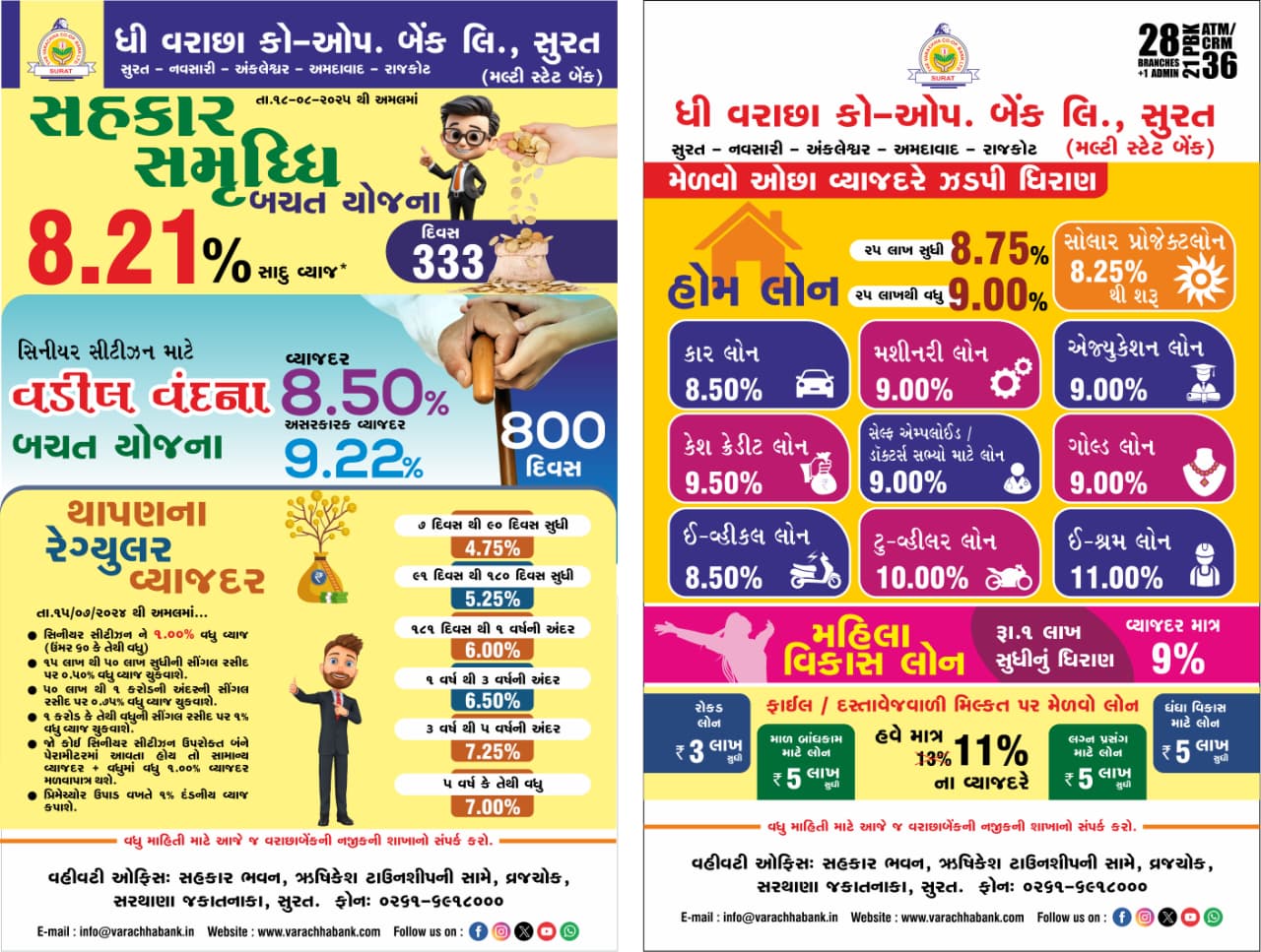 વરાછા બેંકને વર્ષ 2024-25 માટે ટોટલ બિઝનેસ ગ્રોથ એન્ડ એક્સપાન્શન માટે સ્કોબા પ્રાઇડ સમેત 3 એવોર્ડ