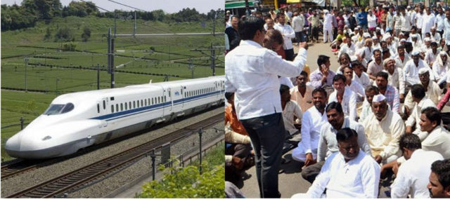 મહારાષ્ટ્રના પાલઘર ખાતે ખેડૂતોએ બુલેટ ટ્રેન સામે વિરોધ પ્રદર્શન કર્યું હતું તે વખતની તસ્વીર