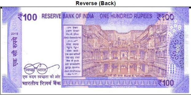 ભારતીય રિઝર્વ બૅન્ક (આરબીઆઇ)એ ગઇ તા.19મી જુલાઇ 2018ના રોજ જાહેર કર્યું હતું કે અમે ટૂંક સમયમાં જાંબુડિયા રંગની રૂપિયા 100ની નવી નૉટ બહાર પાડીશું અને તેના પર મધ્યવર્તી બૅન્કના ગવર્નર ઊર્જિત પટેલની સહી હશે.