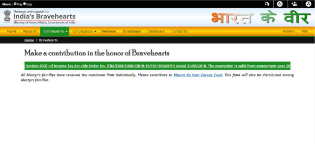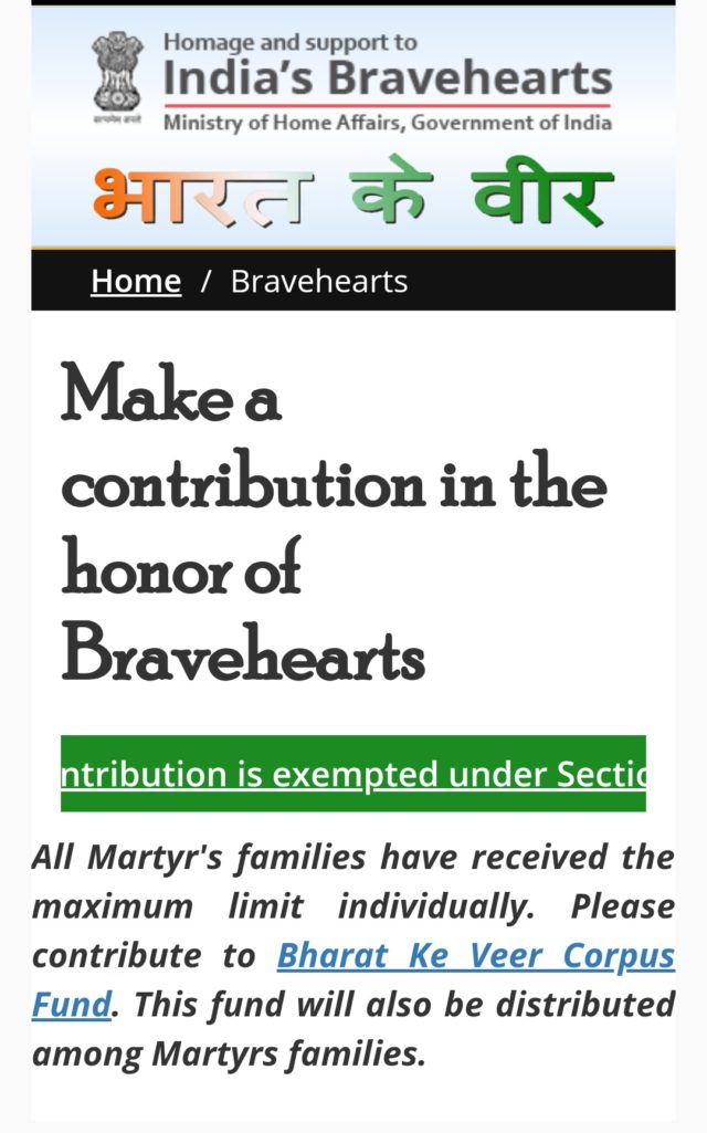 ભારત કે વીર https://bharatkeveer.gov.in વેબસાઇટ આ પ્રકારનું લખાણ લખવામાં આવ્યું છે.