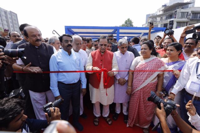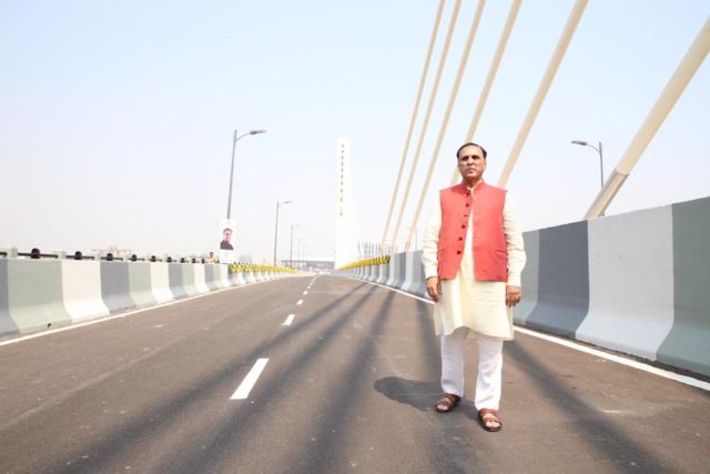 કેબલ સ્ટેઇડ બ્રિજનું લોકાર્પણ રિબન કાપીને કર્યું હતું મુખ્યમંત્રી વિજય રૂપાણીએ