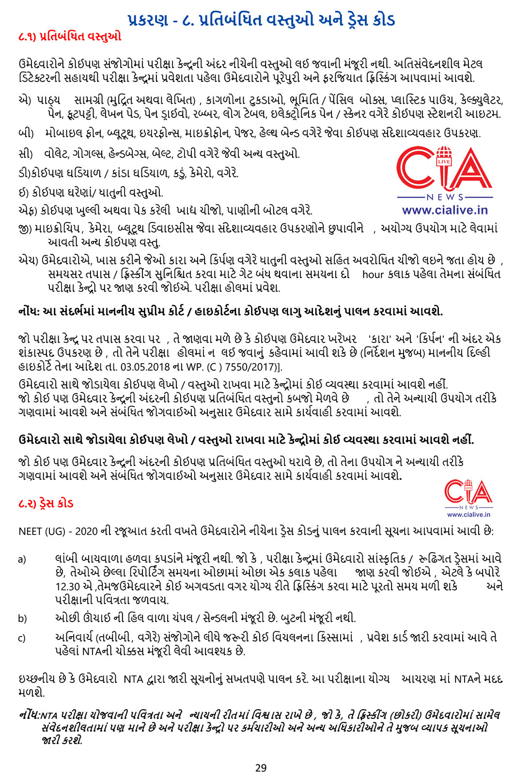 ઉપરોક્ત સૂચનાઓ સત્તાવાર રીતે ગુજરાતીમાં જાહેર કરવામાં આવેલા નીટ-2020 પરીક્ષાના નોટિફિકેશનના પેજ નં.29 પર ઉપલબ્ધ છે. એ પેજની જેપીજી ઇમેજ અહીં રજૂ કરવામાં આવી છે.