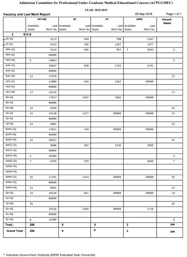 જે બેઠકો ખાલી પડી છે તેમાંથી 99 ટકા બેઠકો ઓપન કેટેગરીમાં ખાલી પડી છે. જાણકારો જણાવે છે કે ગુજરાતમાં પહેલી વખત એવું બન્યું કે ડેન્ટલ જેવી મહત્વની બ્રાન્ચમાં વિદ્યાર્થીઓ પ્રવેશ લેવાલ નથી. ઓપન કેટેગરીમાં કુલ 286 બેઠકો ખાલી પડી છે જ્યારે કુલ 288 બેઠકો ખાલી છે.