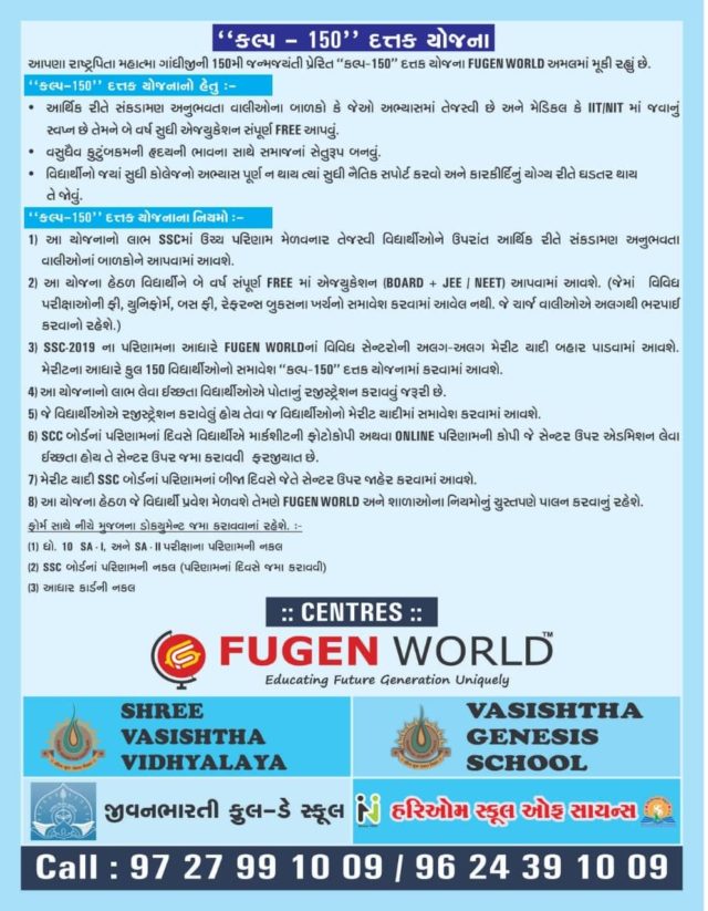 S.S.C.ના વિદ્યાર્થીઓ માટે ફ્યુજન વર્લ્ડની સુવર્ણ યોજના : કલ્પ-150