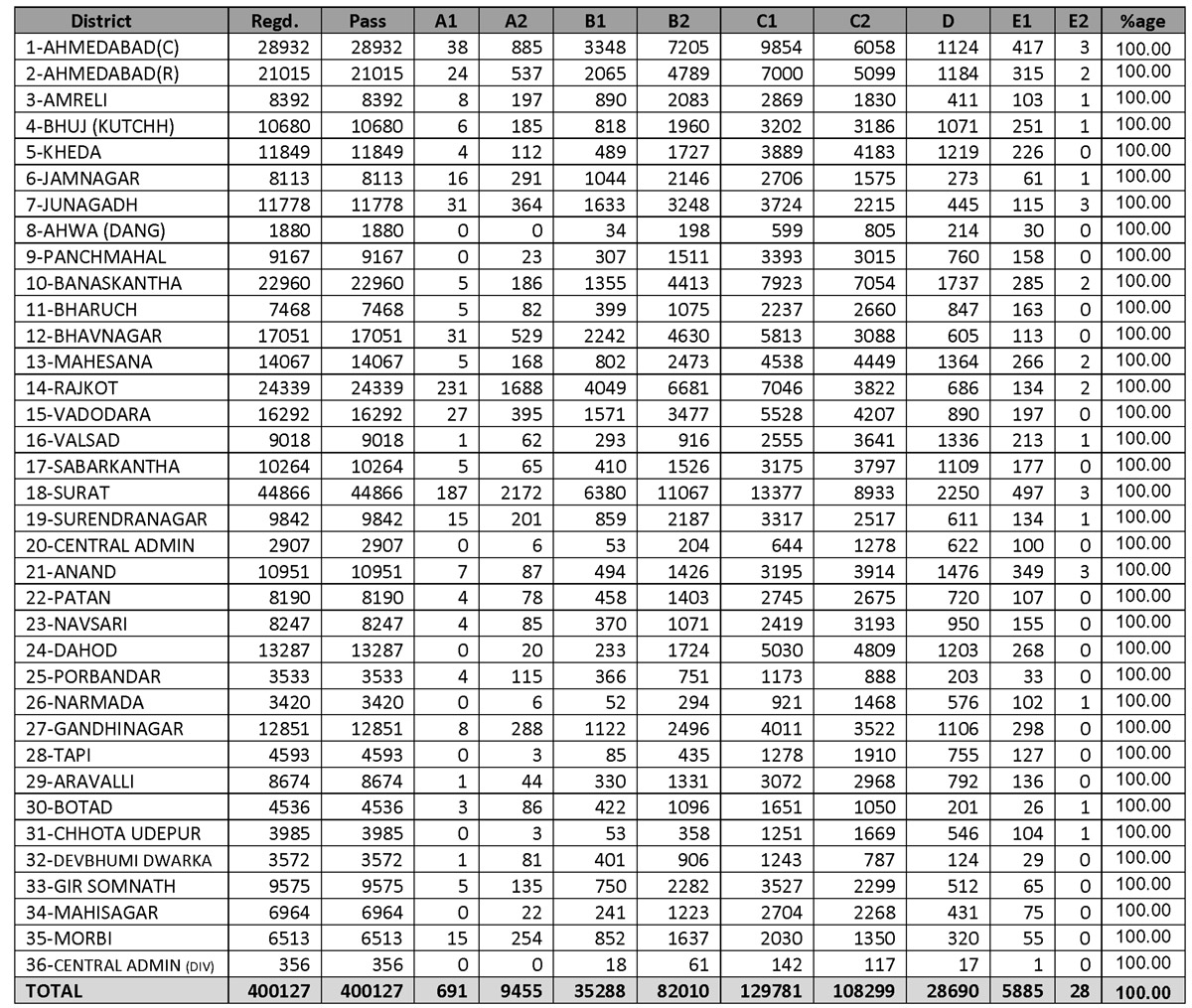 ગુજરાતનું જિલ્લાવાર પરીણામ