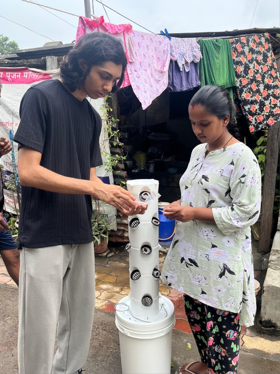 Siddhant Shah of Surat donates recycled hydroponic towers, providing low-income communities with a reliable and sustainable way to earn a passive income and secure lasting financial stability.