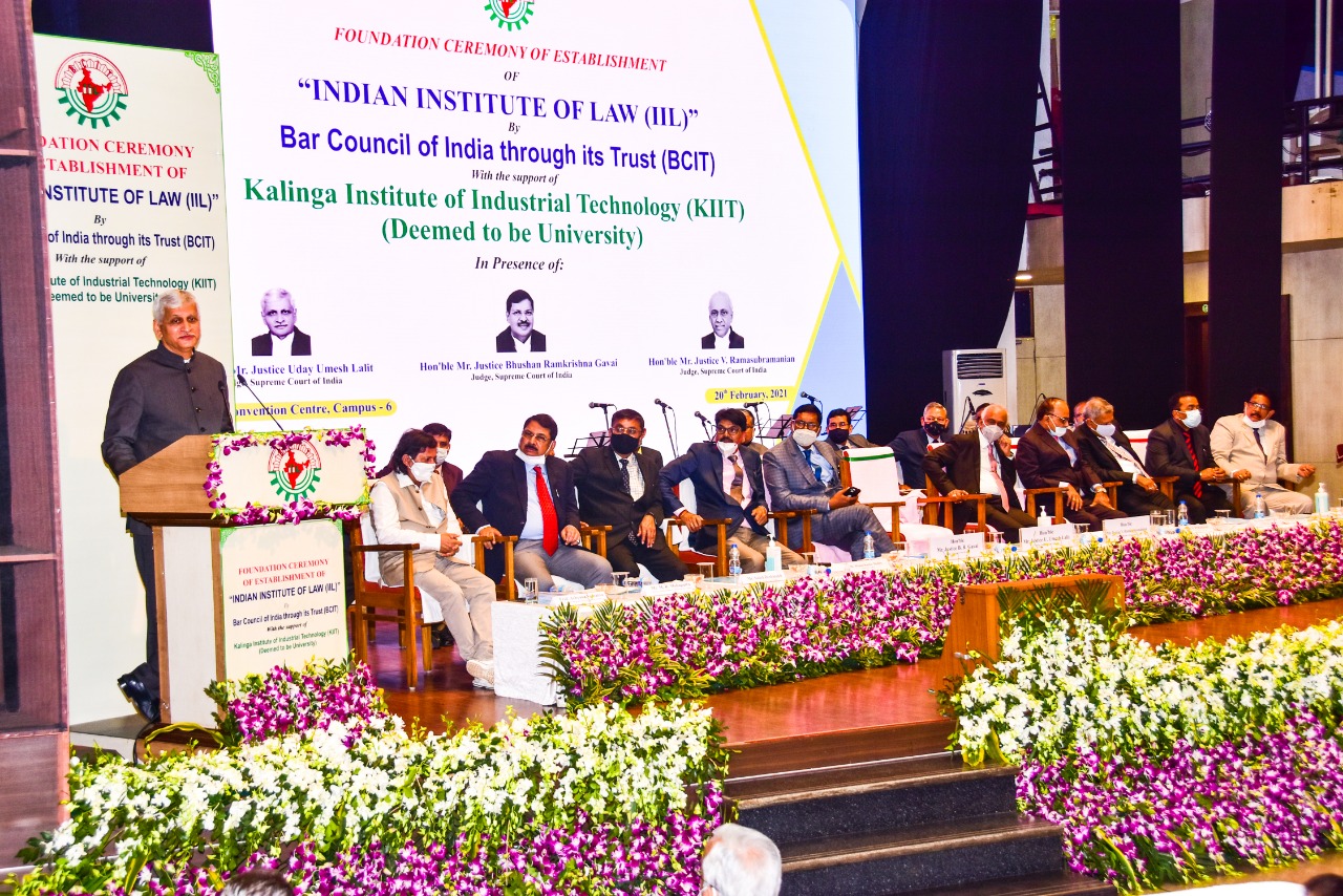 ઈન્ડિયન ઈન્સ્ટિટ્યૂટ ઓફ લૉ (IIL)ની ફાઉન્ડેશન તકતીનું અનાવરણ સુપ્રીમ કોર્ટના ન્યાયાધીશ, માનનીય ન્યાયમૂર્તિ શ્રી ઉદય ઉમેશ લલિત, માનનીય ન્યાયાધીશ શ્રી ભૂષણ રામકૃષ્ણ ગવઈ અને માનનીય ન્યાયમૂર્તિ શ્રી વી.રામાસુબ્રમણ્યમના હસ્તે કરાયું. આ અનાવરણ કાર્યક્રમ 20 ફેબ્રુઆરી 2021 ના રોજ KIIT યુનિવર્સિટી, ભુવનેશ્વર ખાતે યોજાયો. આ સમારોહમાં વરિષ્ઠ વકીલ અને અને બાર કાઉન્સિલ ઓફ ઈન્ડિયા (BCI) અને બાર કાઉન્સિલ ઓફ ઈન્ડિયા ટ્રસ્ટ (BCIT) ના પ્રમુખ શ્રી મનન કુમાર મિશ્રા, ઓડિશાના એડવોકેટ જનરલ, શ્રી અશોક પરીજા, વરિષ્ઠ એડવોકેટ અને BCITના અધ્યક્ષ શ્રી દેબી પ્રસાદ ધલ, BCITના એસોસિયેટ મેનેજિંગ ટ્રસ્ટી અને KIIT તથા KISSના સંસ્થાપક પ્રો. અચ્યુત સામંત સહિત ઘણી કાનૂની હસ્તીઓ હાજર રહી હતી અને સભાને સંબોધન કર્યું હતું.