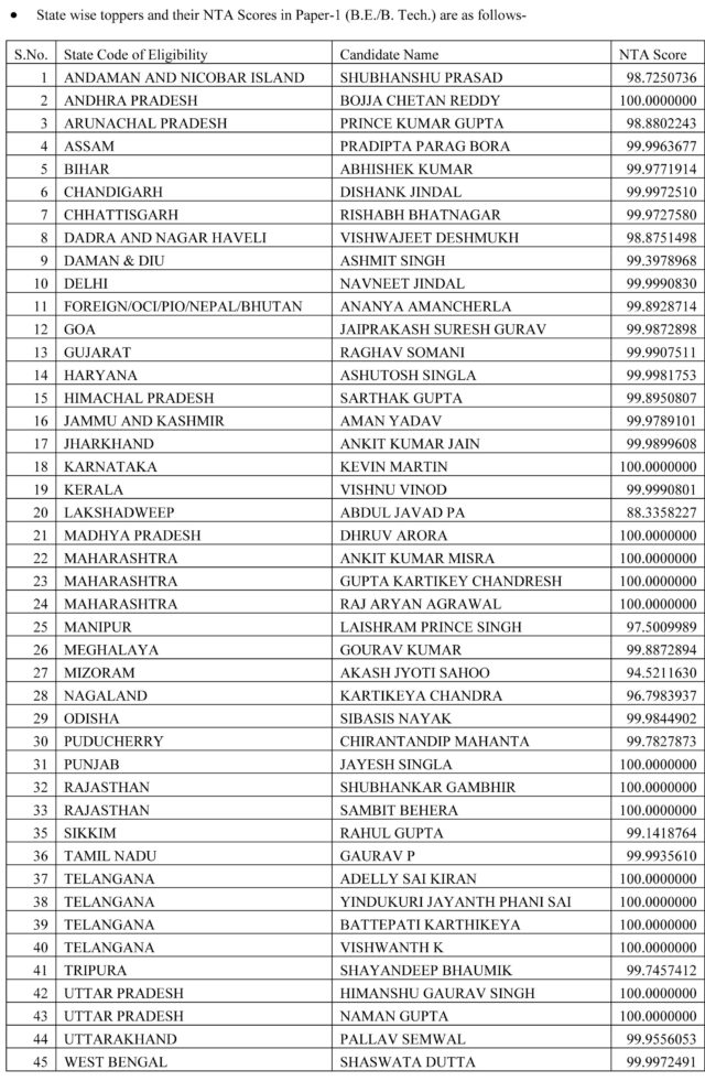 100 સ્કોર લાવનારા દેશના 15 વિદ્યાર્થીઓમાં એકેય ગુજરાતી નહીં