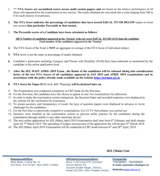 - જેઇઇ પેપર-1 જાન્યુઆરી 2019નું પરીણામ આ મુજબની વેબસાઇટ પરથી જાણી શકાશે.