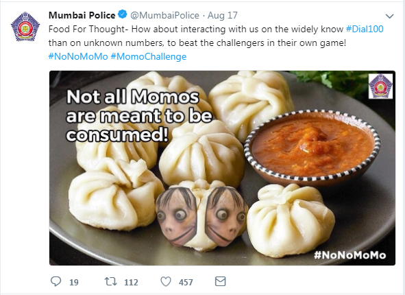 આખી દુનિયામાં બ્લૂ વેલ જેવી ખતરનાક ગેમ કારણે ૧૦૦ કરતાં પણ વધુ યુવાનોએ જીવ ગુમાવ્યા હતાં, ત્યારબાદ સોશિયલ મીડિયા પર વધુ એક જીવલેણ ચેલેન્જ એટલે કે મોમો ચેલેન્જ MOMO Challenge ખૂબ જ જોર પકડી રહી છે. આ મોમો ચેલેન્જ માટે મુંબઇ પોલીસે આ ખતરનાક ચેલેન્જ સંબંધી એક ચેતવણી બહાર પાડી છે અને લોકોને આ અંગે જાગૃત રહેવાની સલાહ આપી છે. મુંબઇ પોલીસે ટ્વિટરનો સહારો લઇને મોમો ચેલેન્જ અંગે જાગરૂકતા ફેલાવી રહી છે. તેમ જ Dial100 જેવા હેશટૅગ વાપરીને મુંબઇ પોલીસે મહત્ત્વનું પગલું ભર્યું છે. તેમ જ તેની સાથે સંદેશ પણ લખ્યો હતો કે બધા મોમોનો વપરાશ થાય એવું જરૂરી નથી.