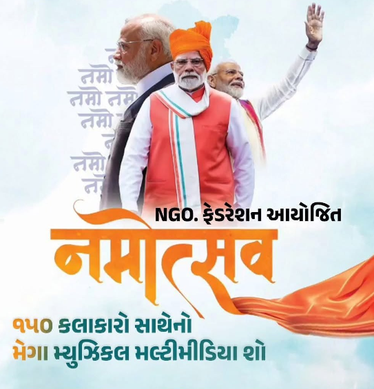 Today તા. 7/09/2025નાં રોજ સુરત શહેર ખાતે લેબગ્રોન ડાયમંડ એસોસિએશન આયોજીત પ્રધાનમંત્રી નરેન્દ્ર મોદીના જીવન અને કવન પરનો મેગા મ્યુઝીકલ મલ્ટીમીડિયા કાર્યક્રમ “નમોત્સવ” યોજાશે. પ્રસિદ્ધ હાસ્યકલાકાર સાંઈરામ દવે સાથે આશરે દોઢસો જેટલા કલાકારોના કાફલા દ્વારા આ કાર્યક્રમની એક્ઝિબિશન અને કન્વેશન સેન્ટર, સરસાણા ખાતે પ્રસ્તુતિ કરાશે. જેમાં ગુજરાતના ખ્યાતનામ કલાકારો સાથે વિવિધ નૃત્યકારો, પ્રસિદ્ધ નાટ્યકારો અને સુરીલા સંગીતકારો આ સમગ્ર કાર્યક્રમ રજૂ કરશે.