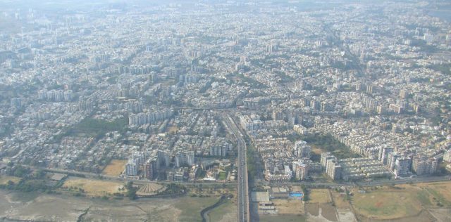હાલના અડાજણનો એરીયલ વ્યૂ, સરદાર બ્રિજથી શરૂ કરીને આખું અડાજણ ચિત્રમાં કંડારી લેવાયું છે