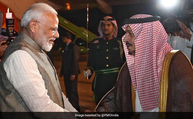 વડાપ્રધાન નરેન્દ્ર મોદી સોમવારે મોડી રાત્રે નવી દિલ્હીથી સાઉદી અરબ જવા માટે નીકળ્યા હતા. ભારતમાં ભાઇબીજની વહેલી સવારે તેઓ સાઉદીની રાજધાની રિયાધ પહોંચ્યા હતા. વડાપ્રધાન શ્રી મોદી એર ઈન્ડિયાના વિશેષ વિમાનથી રિયાદના કિંગ ખાલિદ ઈન્ટરનેશનલ એરપોર્ટ પર ઉતર્યા હતા. સ્થાનિક સમય મુજબ ત્યાં મધરાત હતી આમ છતાં તેમનું ઉષ્માભેર તેમનું સ્વાગત કરવામાં આવ્યું હતું.