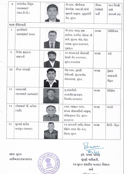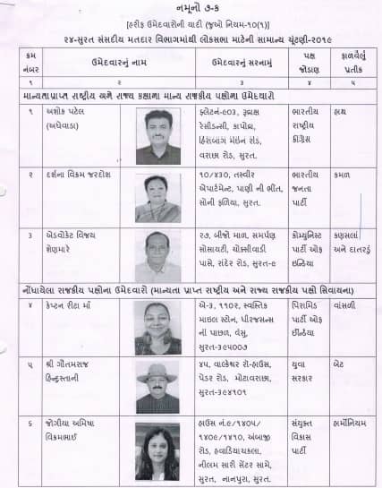 અત્રે એ ઉલ્લેખનીય છે કે 2014ની ચૂંટણીમાં સુરત બેઠક પરથી 8 ઉમેદવારો મેદાનમાં ઝુકાવ્યું હતું.