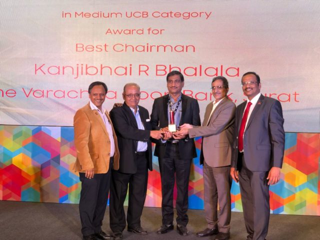દક્ષિણ ગુજરાતની તમામ સહકારી બેંકોમાં વિવિધ માપદંડને આધારે 23 બ્રાન્ચ અને રૂ.2100 કરોડનો બિઝનેસ ધરાવતી વરાછા બેંકને 2017-18 માટે ચેમ્પિયન ઓફ ચેમ્પિયનનો ખાસ એવોર્ડ આપીને તેના વર્તમાન ચેરમેન શ્રી કાનજીભાઇ ભાલાળાને બહુમાનિત કરાયા હતા. વરાછા કો.ઓ. બેંક વતી શ્રી કાનજીભાઇ ભાલાળાએ ત્રણેય એવોર્ડ સ્વીકાર્યા હતા. બેંકના સ્થાપક ચેરમેન શ્રી પી.બી. ઢાકેચા, ચેરમેન શ્રી કાનજીભાઇ ભાલાળા, એમ.ડી. શ્રી ભવાનભાઇ નવાપરા તથા બેંકના મહિલા ડિરેક્ટર શ્રીમતી વિમળાબેન વાઘાણીની આખી ટીમ એવોર્ડ સમારોહમાં ઉપસ્થિત રહીને બહુમાન સ્વીકાર્યું હતું.
